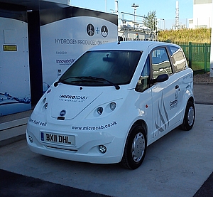 Microcab H2EV at the opening of ITM Power station, Sheffield.