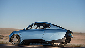 This car is a two seater ‘network electric’ car, powered by a hydrogen fuel cell. Weighing 580kg - about half the weight of a small petrol or diesel car - it has a potential range of up to 300 miles (482 km) on 1.5kg of hydrogen - a fuel-economy equivalent of 250mpg.