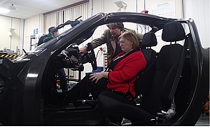 The Minister inspecting the Riversimple Mk2 chassis in November 2015.